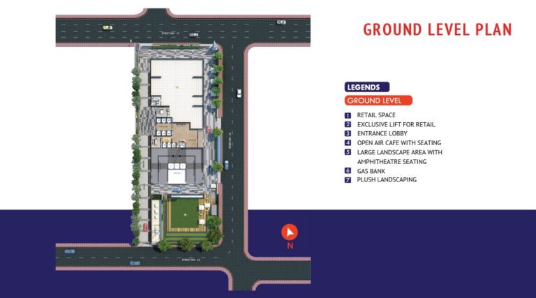 Retail Space: Prime ground-level frontage for shopping/dining outlets.